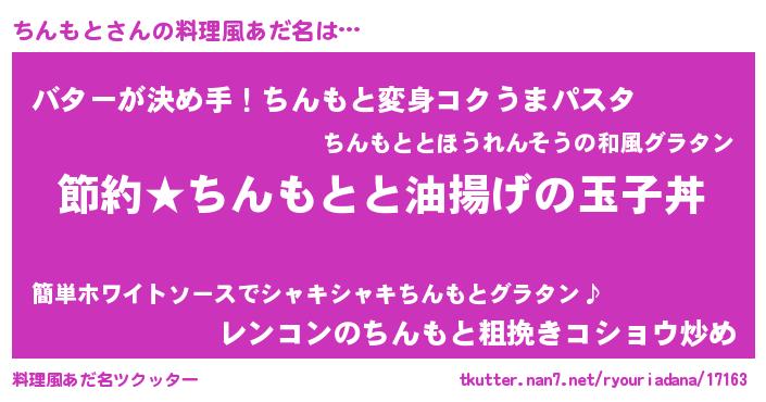 | ヘコむあだ名 | 『ちんにゅー』『ちんを』『酢こんぶ』 |