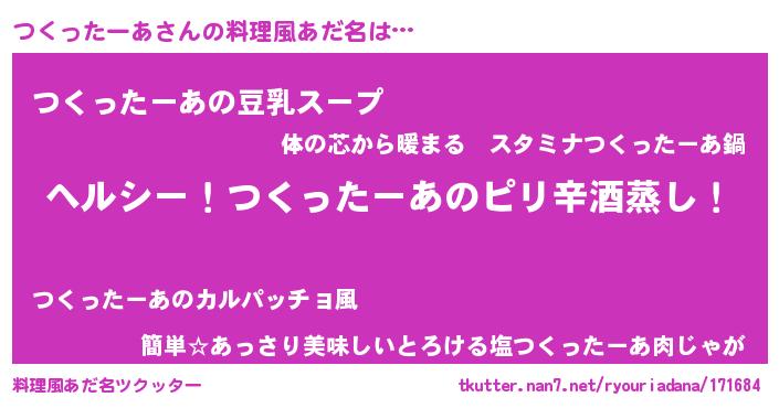 | 男性向けラノベタイトル風あだ名 | 『Re:つくったーあから始める異世界生活』 |