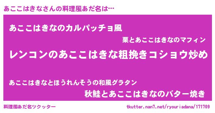 | 意味不明あだ名 | 『自称あここはきな』 |
