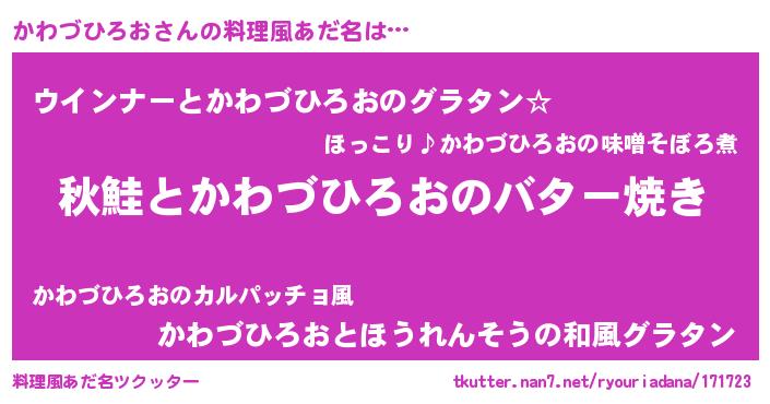 | ヘコむあだ名 | 『かわづひろお(小並感)』『なまこ酢』 |