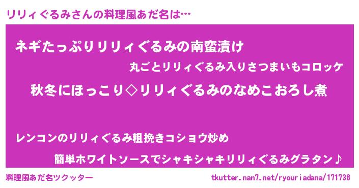 | 意味不明あだ名 | 『ペロリンリリィぐるみ』 |