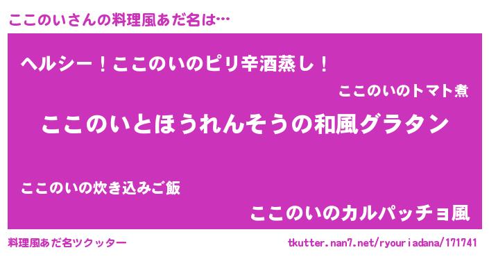 | 意味不明あだ名 | 『ヨモギ科ここのい属』『自称ここのい』 |