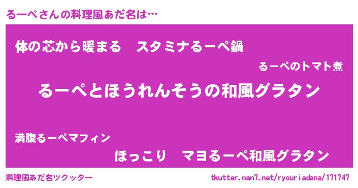 | 男性向けラノベタイトル風あだ名 | 『転生したらるーぺだった件』 |