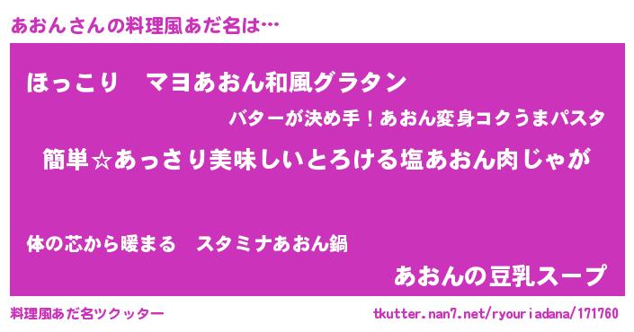 | 意味不明あだ名 | 『永久保存あおん』『あおんフォーエバー』 |