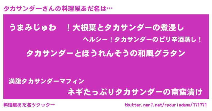 | 胡散臭い通販商品みたいなあだ名 | 『運命の人と巡り会える高級そうな皿…その名も「タカサンダー」』 |