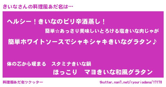 | 意味不明あだ名 | 『とにかく怪しいきいな』『自称きいな』 |