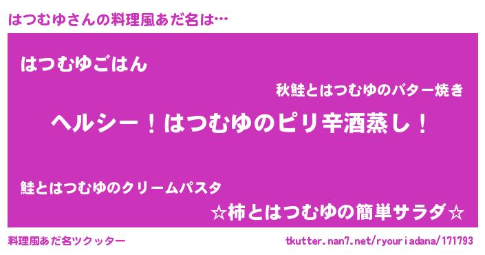 | 男性向けラノベタイトル風あだ名 | 『Re:はつむゆから始める異世界生活』 |