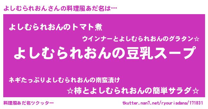 | 胡散臭い通販商品みたいなあだ名 | 『信頼と実績のサプリメント…その名も「よしむられおん」』 |