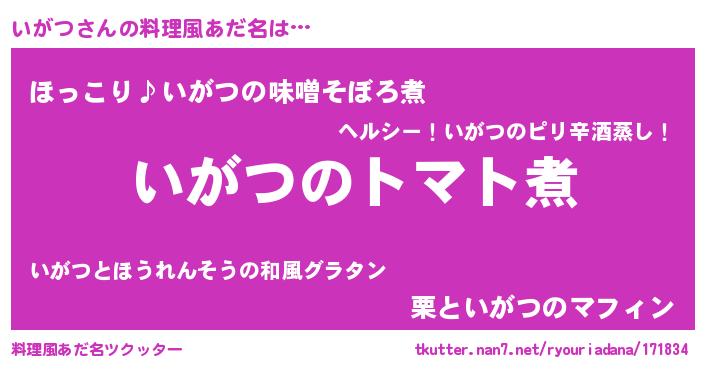 | 女子向けラノベタイトル風あだ名 | 『いがつ夫妻のなれそめ』『闇のいがつ』 |