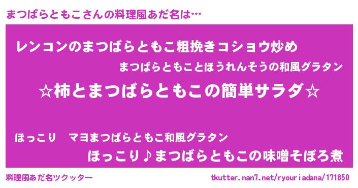 | 恥ずかしいあだ名 | 『マツバラトモコデラックス』『まつちん』 |