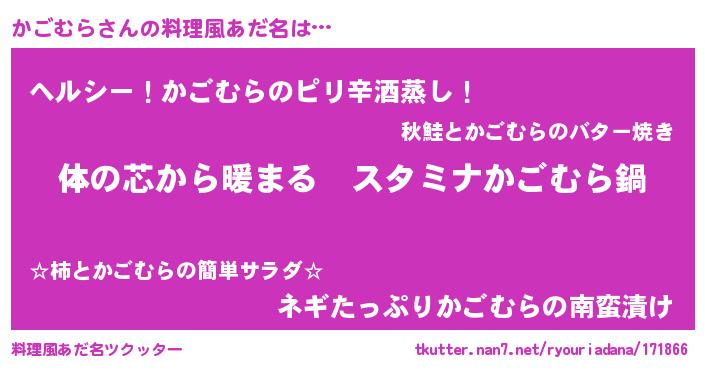 | 女子向けラノベタイトル風あだ名 | 『かごむらの雑貨屋さん』『闇のかごむら』 |