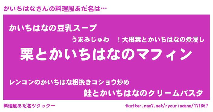 | 意味不明あだ名 | 『とにかく怪しいかいちはな』 |