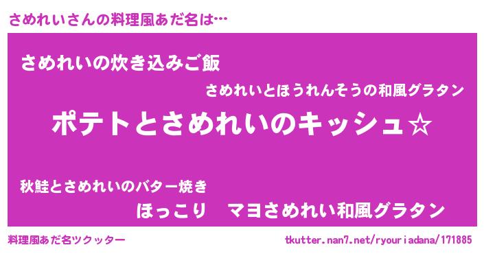 | 胡散臭い通販商品みたいなあだ名 | 『伝統あるサプリメント…その名も「さめれい」』 |