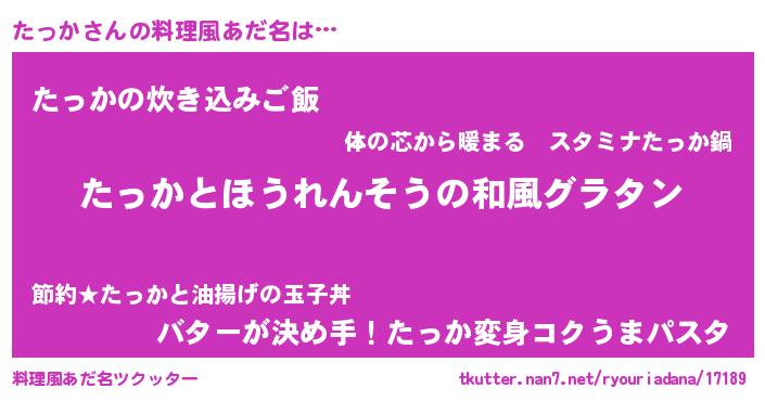 | 意味不明あだ名 | 『つくし科たっか属』『ペロリンたっか』 |