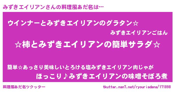 | 男性向けラノベタイトル風あだ名 | 『緋弾のミズキエイリアン』 |