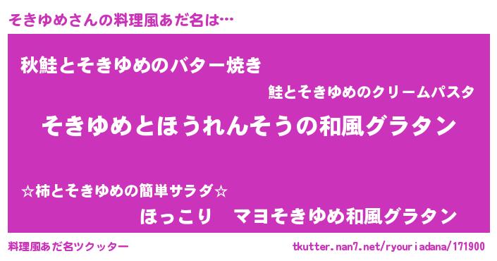 | 意味不明あだ名 | 『ヨモギ科そきゆめ属』『自称そきゆめ』 |