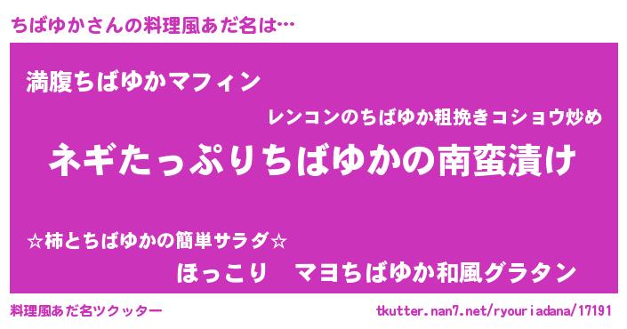| 意味不明あだ名 | 『ペロリンちばゆか』『永久保存ちばゆか』 |