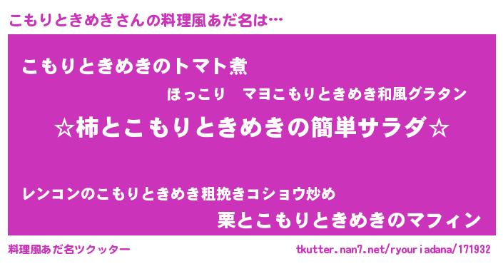 | 欧米人風あだ名 | 『こもりときめき・ステッグマイヤー』 |