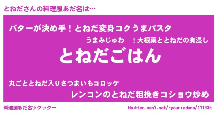 | 可愛いあだ名 | 『とねぷりん』『とねちゅっちゅ』 |