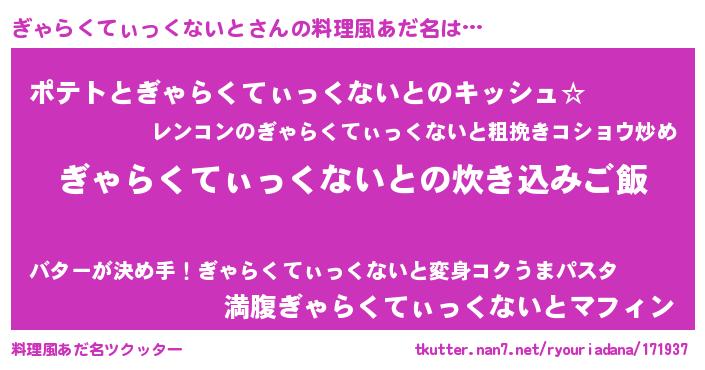 | ヘコむあだ名 | 『ぎゃっ子』『ぎゃらくてぃっくないと(笑)』 |