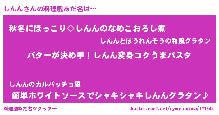 | 女子向けラノベタイトル風あだ名 | 『しんん恋絵巻』『横柄しんんと宰相陛下』 |