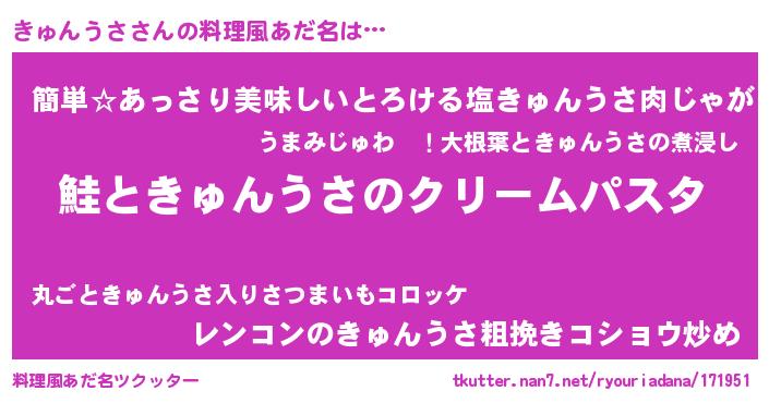| 男性向けラノベタイトル風あだ名 | 『ノーゲーム・ノーキュンウサ』 |