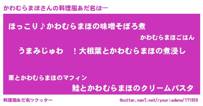 | 胡散臭い通販商品みたいなあだ名 | 『運命の人と巡り会える高級そうな壺…その名も「かわむらまほ」』 |