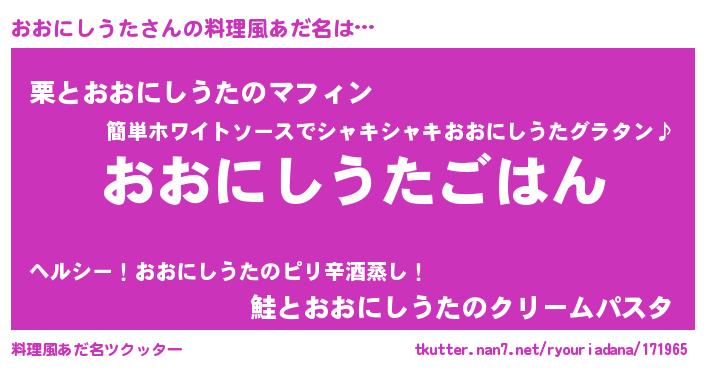 | 意味不明あだ名 | 『めかぶ科おおにしうた属』 |