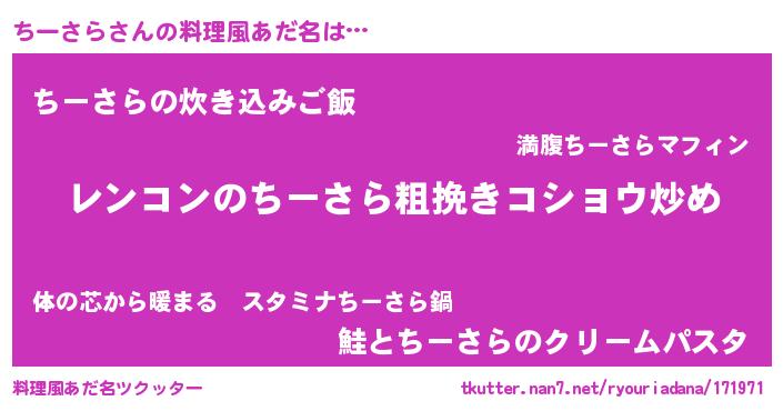| 意味不明あだ名 | 『自称ちーさら』『永久保存ちーさら』 |