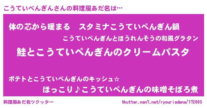| 男性向けラノベタイトル風あだ名 | 『ノーゲーム・ノーコウテイペンギン』 |
