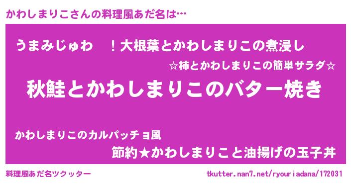| 意味不明あだ名 | 『永久保存かわしまりこ』 |