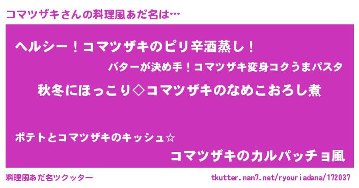 | 意味不明あだ名 | 『自称コマツザキ』『永久保存コマツザキ』 |