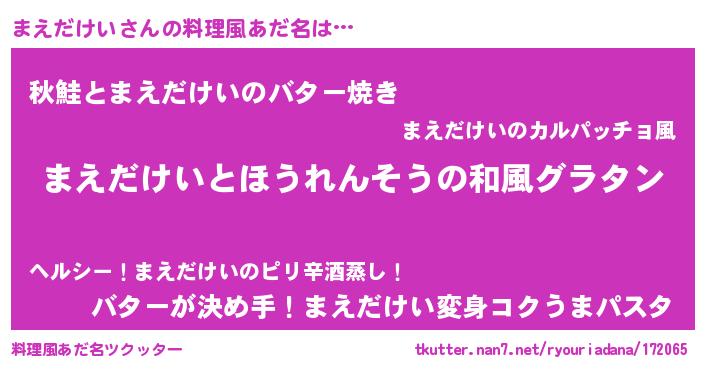 | 胡散臭い通販商品みたいなあだ名 | 『来世でも幸せになれる健康食品…その名も「まえだけい」』 |