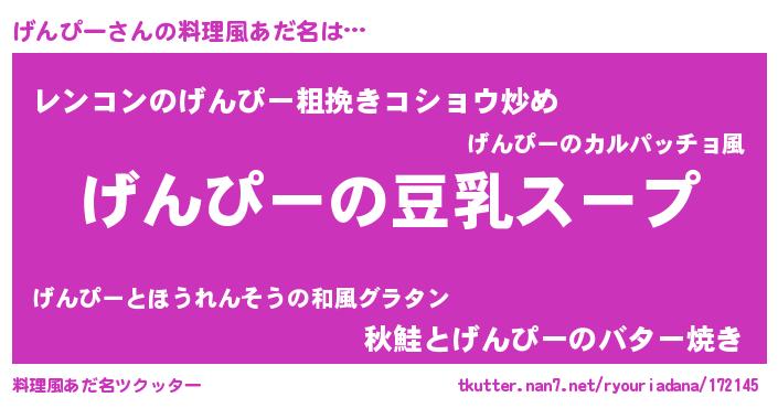 | 男性向けラノベタイトル風あだ名 | 『ダンジョンにげんぴーを求めるのは間違っているだろうか』 |
