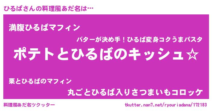 | 女子向けラノベタイトル風あだ名 | 『ひるばの卵を拾いまして』 |