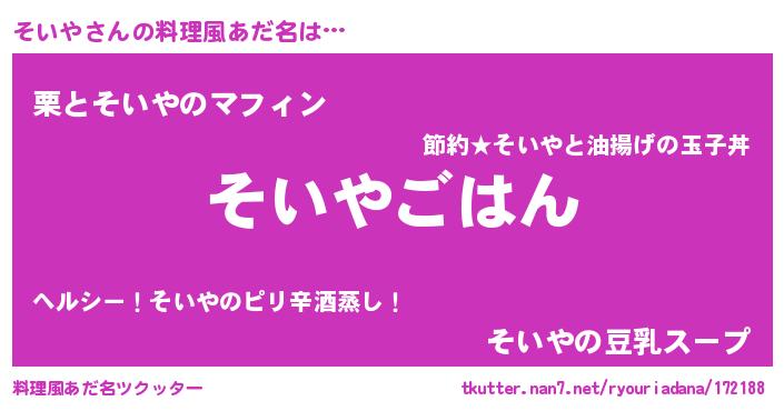 | 意味不明あだ名 | 『エリンギ科そいや属』『ペロリンそいや』 |