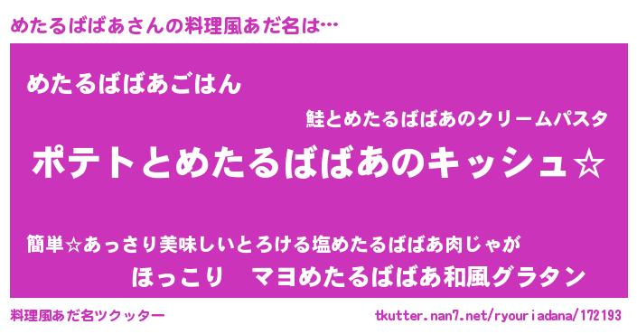| 女子向けラノベタイトル風あだ名 | 『めたるばばあの卵を拾いまして』 |