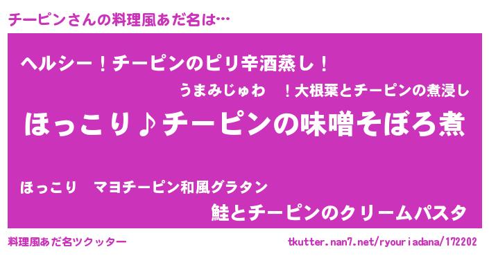 | 男性向けラノベタイトル風あだ名 | 『チーピンの憂鬱』 |