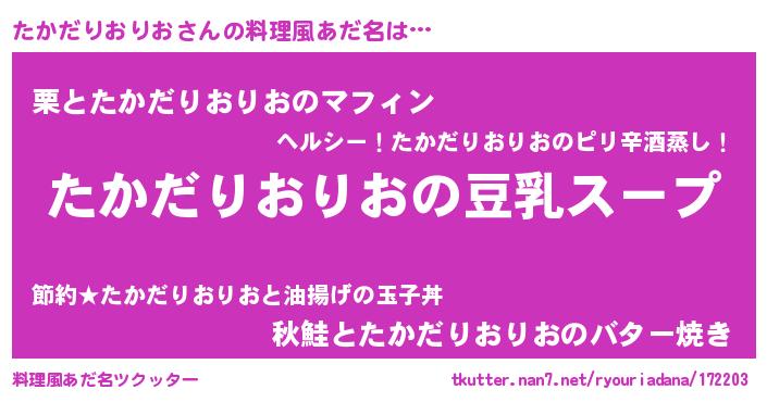 | 意味不明あだ名 | 『とにかく怪しいたかだりおりお』 |