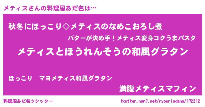 | ヘコむあだ名 | 『メティス(爆)』『メテもー』 |