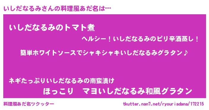 | 男性向けラノベタイトル風あだ名 | 『いしだなるみの嫁は女の子じゃないと思った?』 |