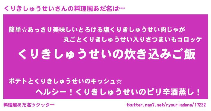 | ピコ太郎風あだ名 | 『ピコク郎』『クリ八郎』『クク太郎』 |