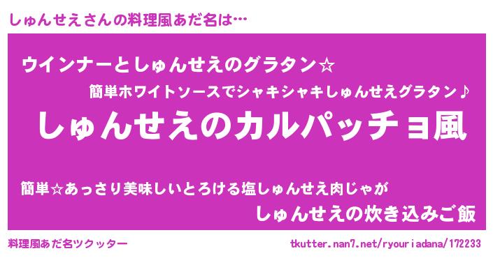 | ピコ太郎風あだ名 | 『ピシ三郎』『シュ六郎』『ピコシ郎』 |
