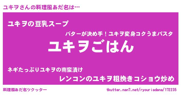 | 男性向けラノベタイトル風あだ名 | 『ユキヲスレイヤー』 |