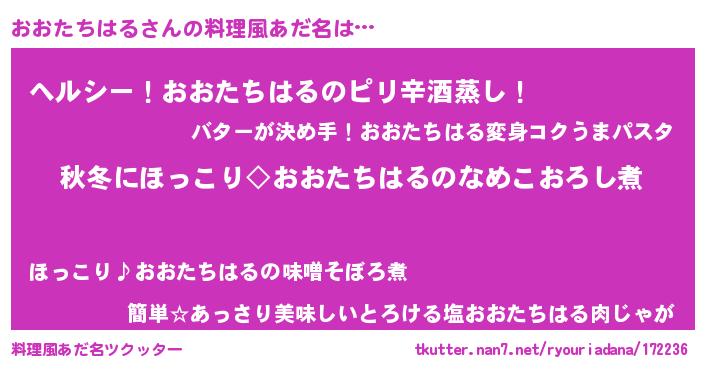 | 男性向けラノベタイトル風あだ名 | 『おおたちはるに滅ぼされるだけの簡単なお仕事です』 |