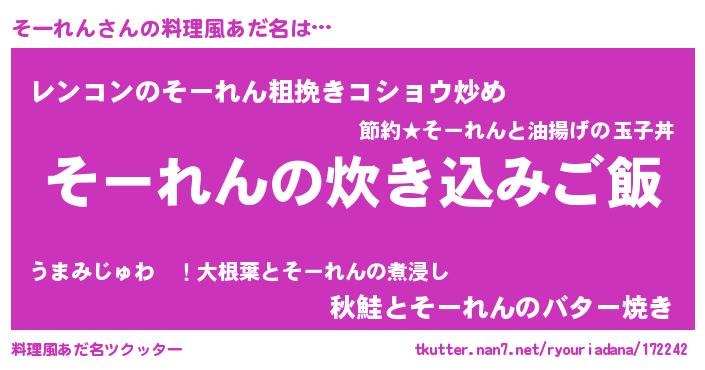 | 意味不明あだ名 | 『自称そーれん』『永久保存そーれん』 |