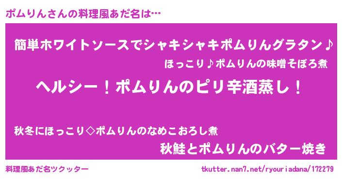 | 意味不明あだ名 | 『自称ポムりん』『永久保存ポムりん』 |