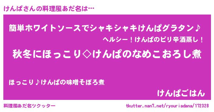 | ピコ太郎風あだ名 | 『ケン十郎』『ケコ三郎』『ピコケ郎』 |