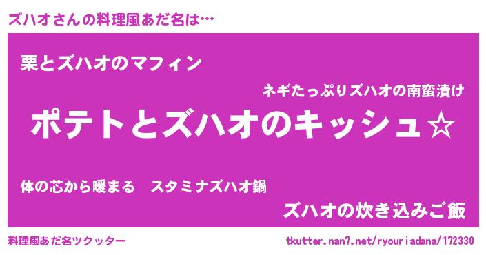 | ピコ太郎風あだ名 | 『ズハ一郎』『ズコ三郎』『ピズ八郎』 |