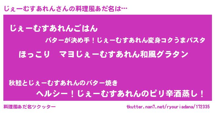 | ヘコむあだ名 | 『じぇーむすあれん(笑)』『じぇもー』 |